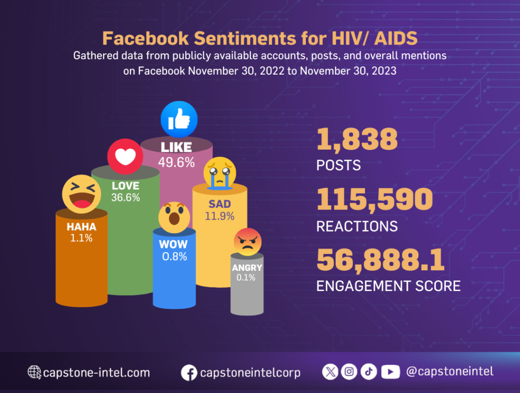 Capstone-Intel examined the online presence of HIV/AIDS in the country as a topic of discussion for one year, from November 30, 2022, to November 30, 2023, by utilizing all publicly accessible posts from social and non-social media platforms in order to gather the sentiments of the public about the topic.